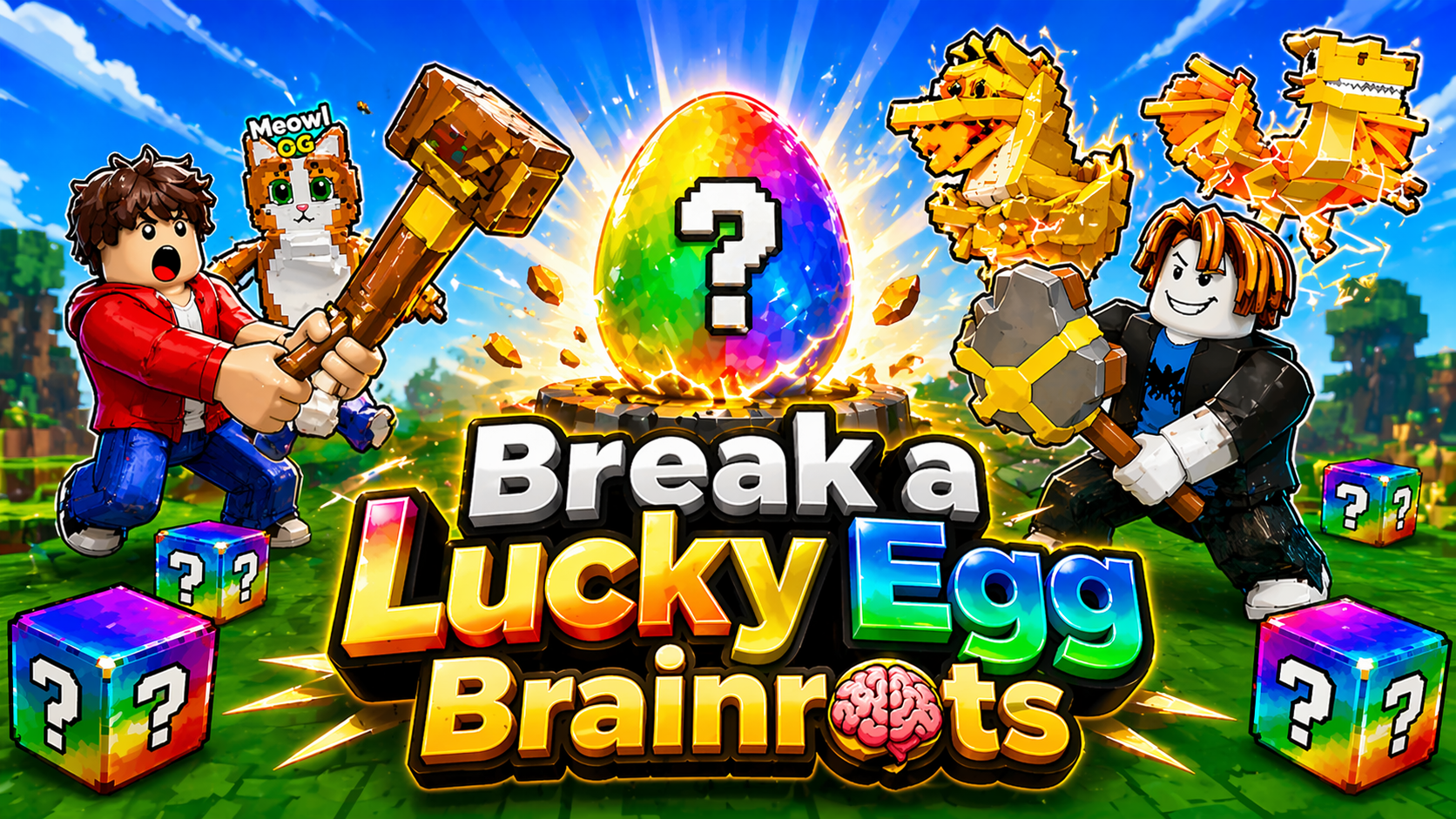 In Break a Lucky Egg Brainrots, you control your character to explore a massive map filled with mysterious eggs. Each egg contains a hidden brain rot, and you’ll need to break it open to reveal your reward. Once collected, bring these brainrots back to your empire, where they automatically generate cash and grow your income over time.