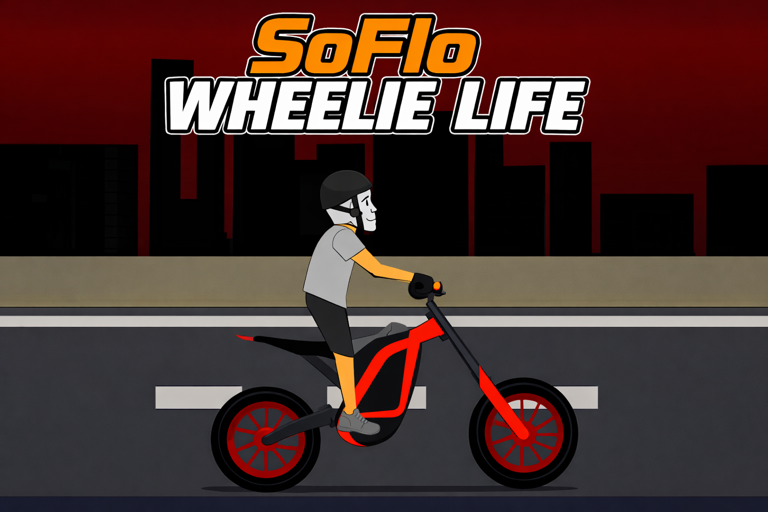 In Soflo Wheelie Life, players control a biker to ride a bike on the endless city track. The game starts as you make the character perform wheelies, lifting the front wheel with a simple click. The goal is to keep this wheel in midair while accelerating forward to gain high scores. The game will end if you lose control and make your character fall backward.
